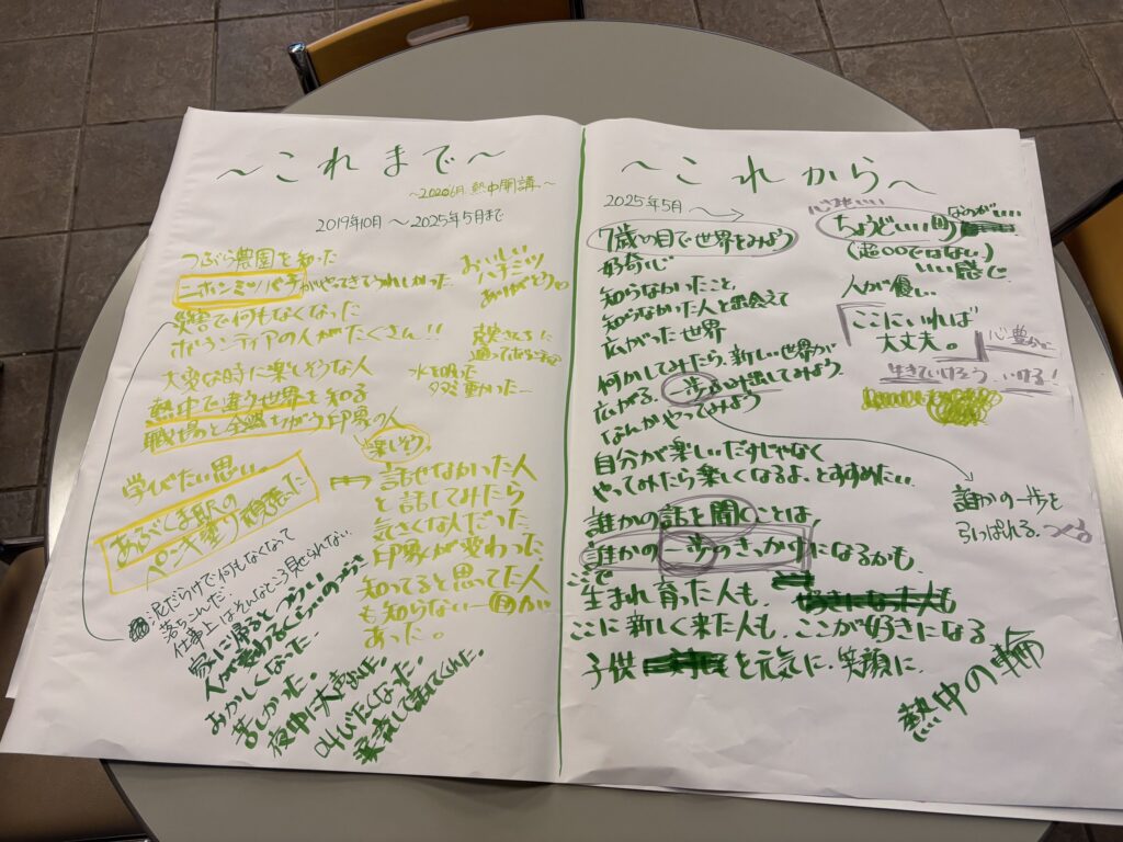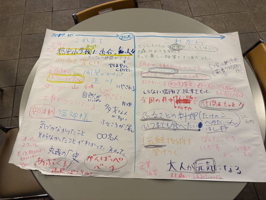 丸森復興分校のこれまでとこれからをテーマに、これまでの授業や課外活動でどんなことをしたか、どんな想いでしたか、どんな感想を持ったかをふりかえり、これから丸森復興分校としてどう在りたいかも加えて、歌詞にしたいフレーズを考えました。