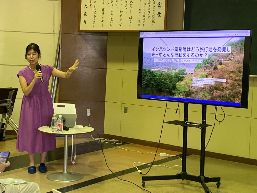 2時間目は、通訳案内士の松澤亜美先生に「インバウンド富裕層はどのように旅先を見つけ、行動しているのか」をテーマにお話しいただきました。