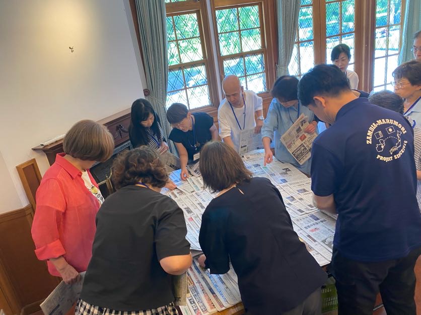 全国の新聞(スポーツ紙も!)を自由に選び、気になった記事を切り抜いて模造紙に貼り、グループごとに“自分たちの新聞”を作る体験です。